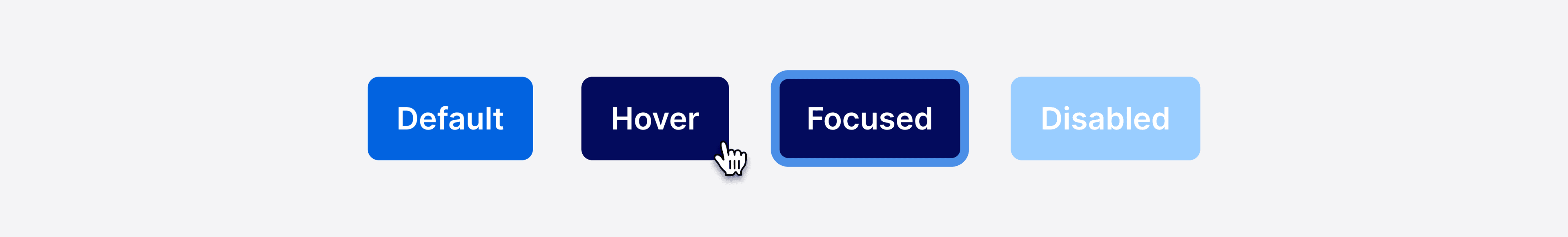 In this example, we are using a combination of color and shadow to help users identify the primary button while in its different states.